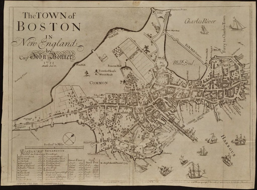 Bonner, John, Price, William. “The town of Boston in New England.” 1723. Norman B. Leventhal Map Center, https://collections.leventhalmap.org/search/commonwealth:9s161f21f (accessed October 22, 2017).
