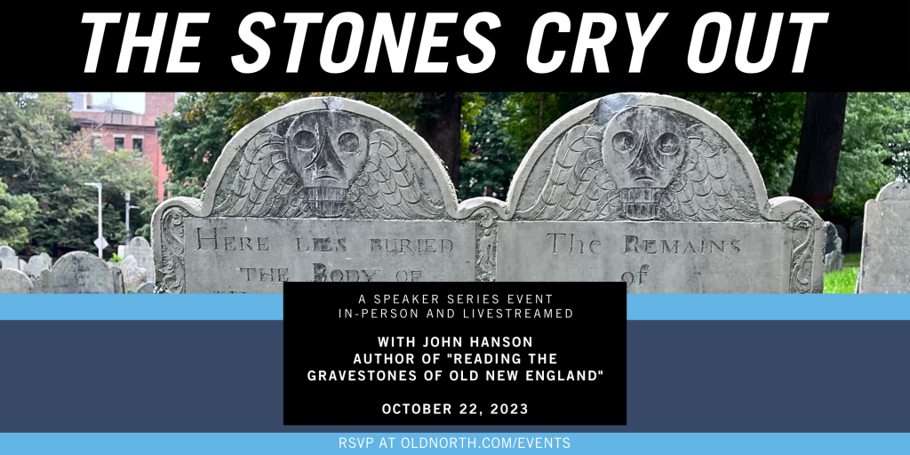 Burial ground expert John Hanson explored the history and poignancy of the Copp’s Hill Burial Ground epitaphs with a multimedia presentation at the Old North Church. The program illuminated history through the artistic disciplines of poetry, verse, and music.